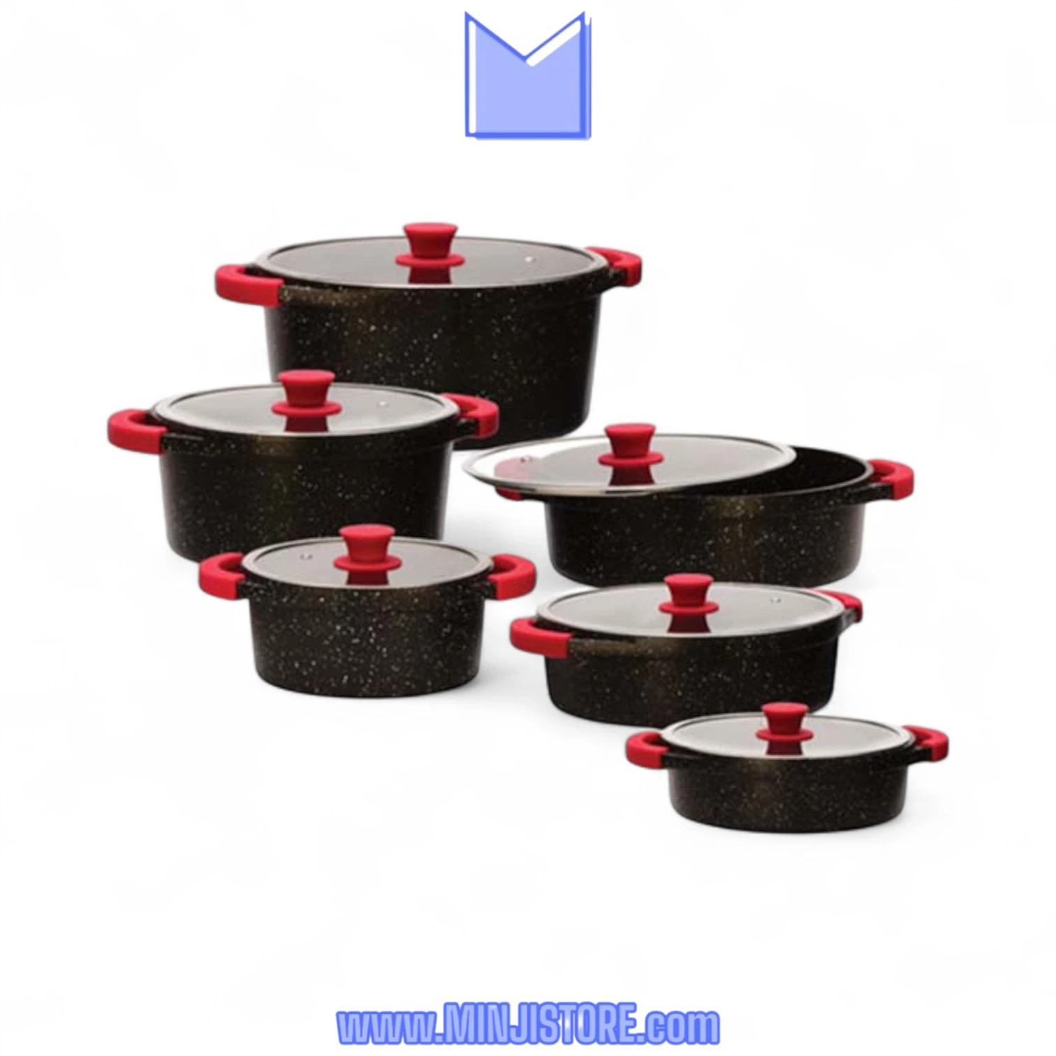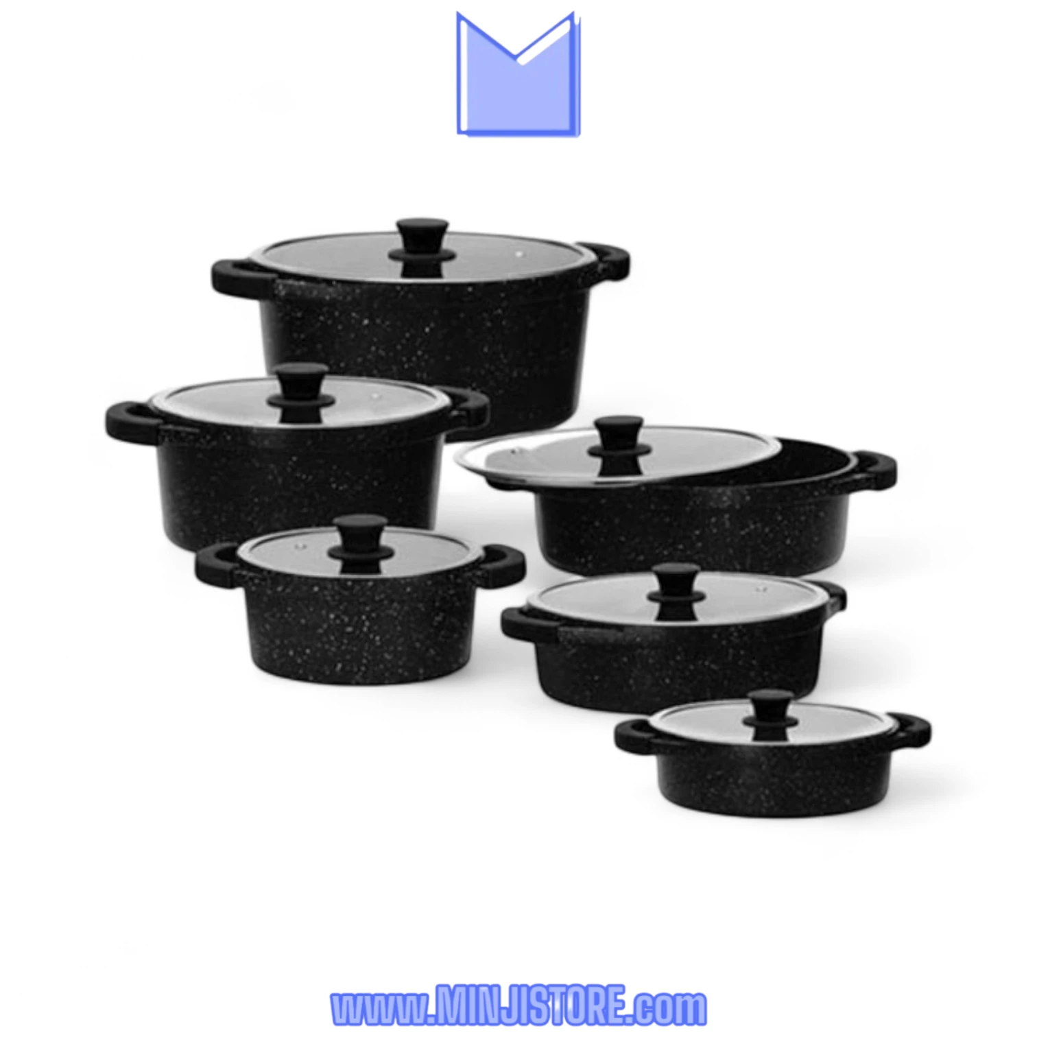 این سرویس شامل ۶ قابلمه در سایزهای مختلف به همراه دربهای شیشهای تخت با زه استیل و سوپاپ خروج بخار است.